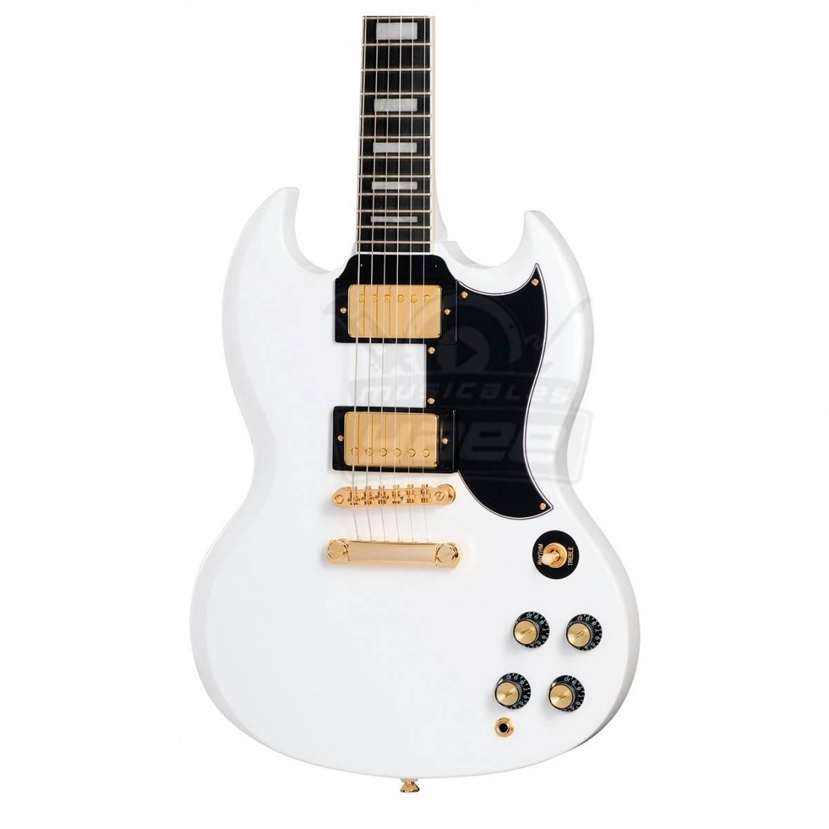 La Epiphone 1963 Les Paul SG Custom With Maestro Vibrola en acabado Classic White es una recreación fiel de la icónica SG Custom de 1963, elaborada en colaboración con el Gibson™ Custom Shop. Este modelo captura todos los detalles que hicieron legendaria a la SG Custom: un mástil de caoba de una sola pieza con long tenon, perfil SlimTaper™, y diapasón de ébano con binding. Las incrustaciones de bloque en madreperla y el clásico diseño de diamante dividido en el clavijero “open book” completan la estética vintage.