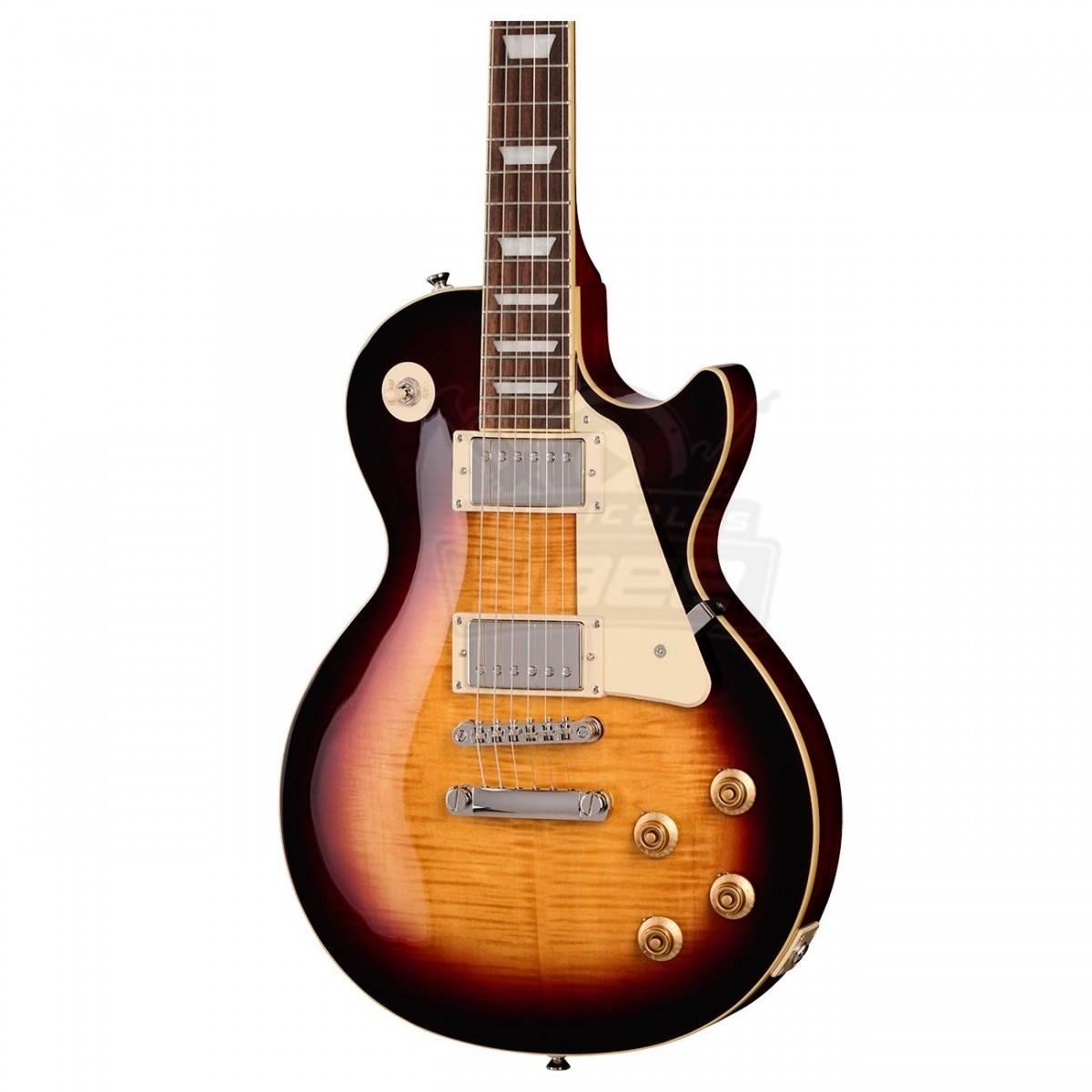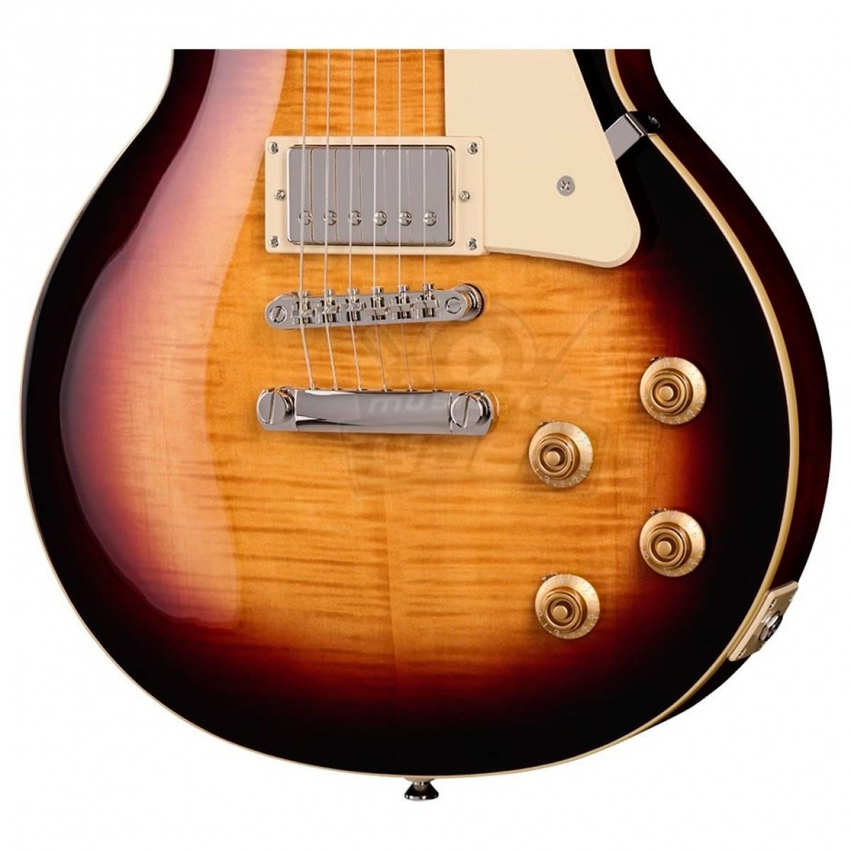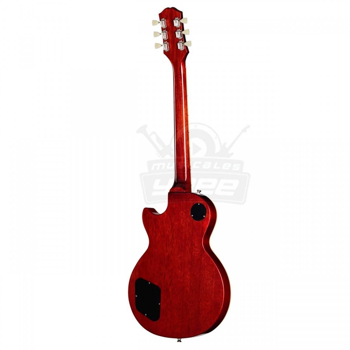 Este modelo presenta un cuerpo de caoba con tapa de arce y una elegante chapa de arce flameado AAA. Su mástil de caoba, con un perfil Rounded Medium C de los años 50 y un long neck tenon, ofrece una comodidad excepcional. El diapasón de laurel con incrustaciones trapezoidales clásicas y los afinadores Epiphone Vintage Deluxe garantizan estabilidad y precisión en cada interpretación.