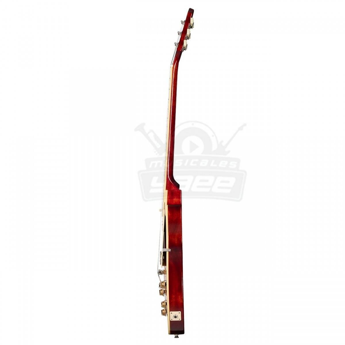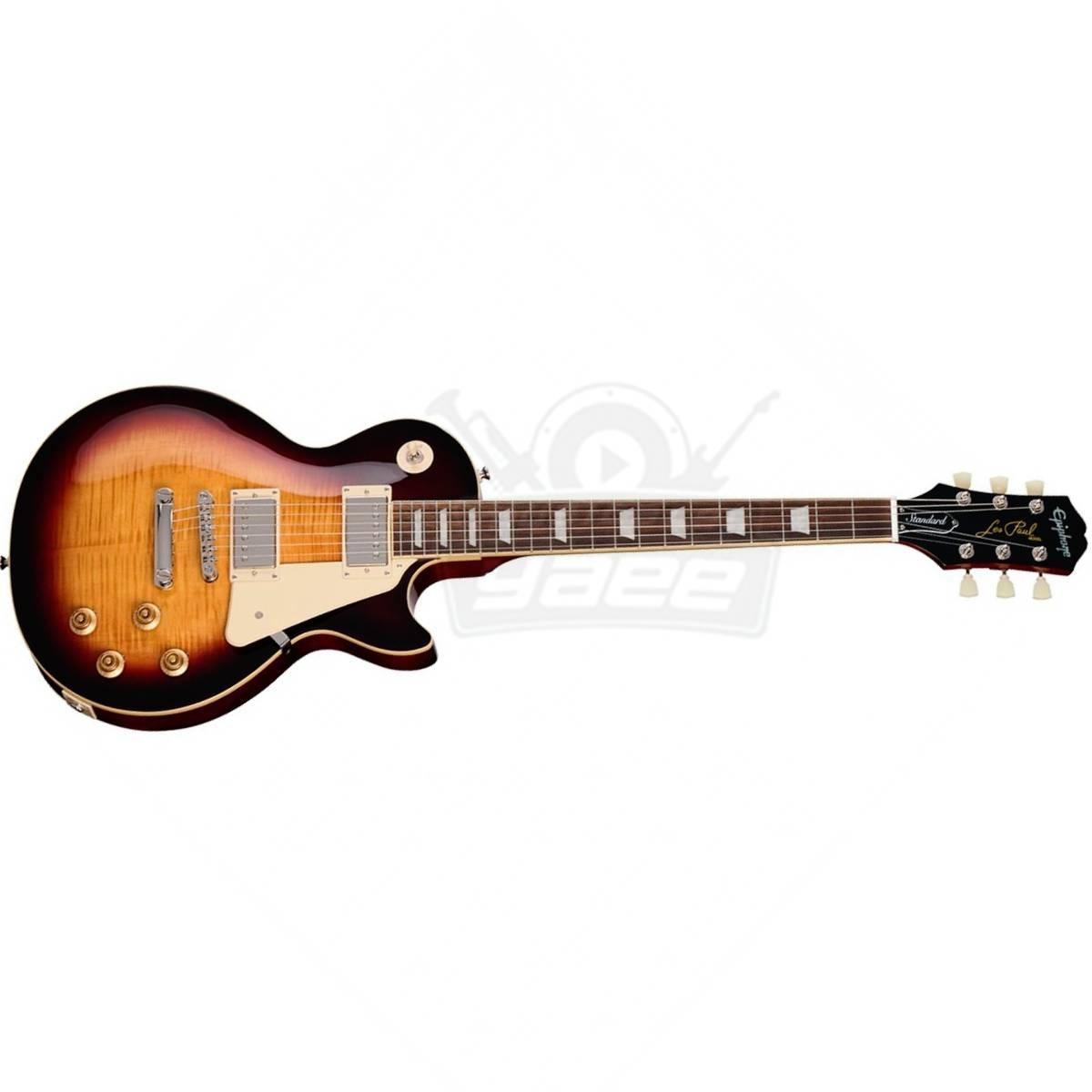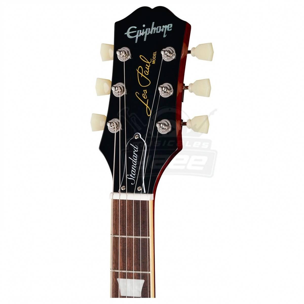 Este modelo presenta un cuerpo de caoba con tapa de arce y una elegante chapa de arce flameado AAA. Su mástil de caoba, con un perfil Rounded Medium C de los años 50 y un long neck tenon, ofrece una comodidad excepcional. El diapasón de laurel con incrustaciones trapezoidales clásicas y los afinadores Epiphone Vintage Deluxe garantizan estabilidad y precisión en cada interpretación.