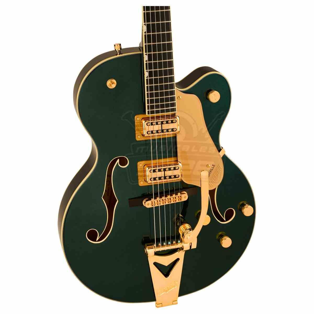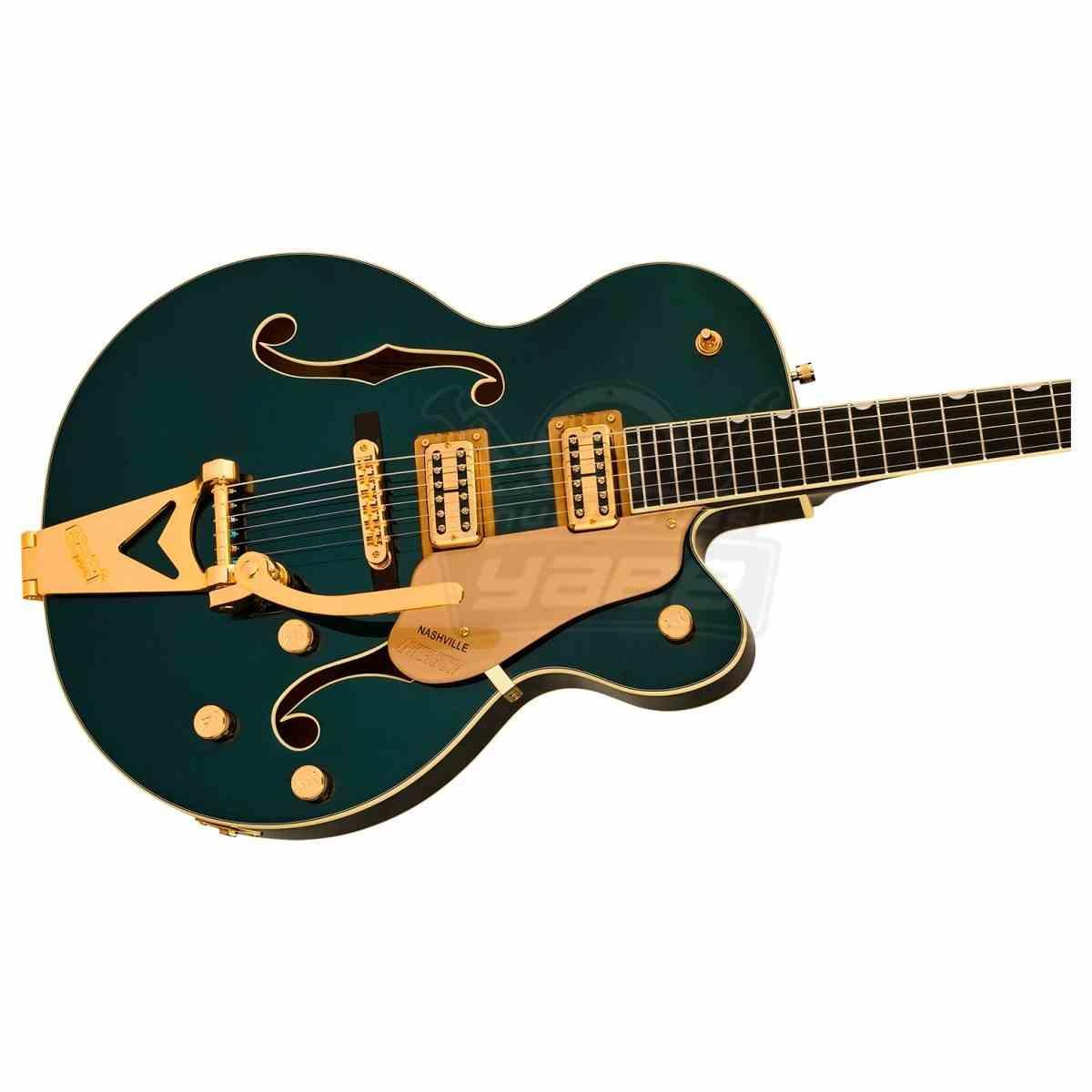 Gretsch Synchromatic Nashville es un modelo de inspiración vintage hollow body que ofrece el icónico tono Gretsch con mejoras modernas. Acabada en el llamativo Cadillac Green, cuenta con un cuerpo de arce laminado de 2,5" de profundidad con refuerzos Semi-Arc para mejorar la resonancia y reducir el feedback, además de un cordal clásico Bigsby B60 para una suave acción de vibrato.