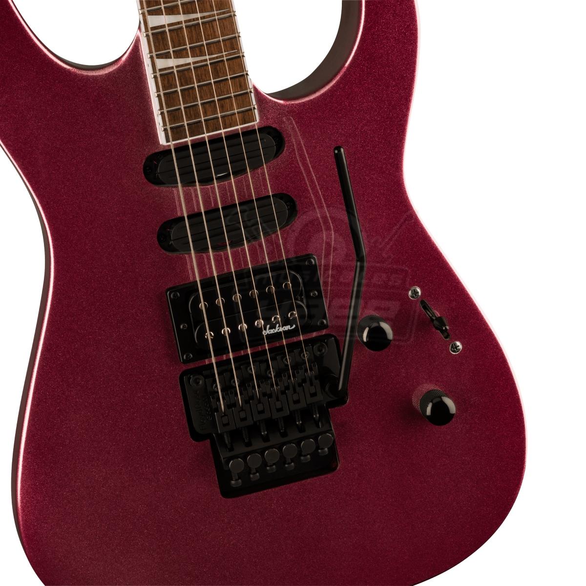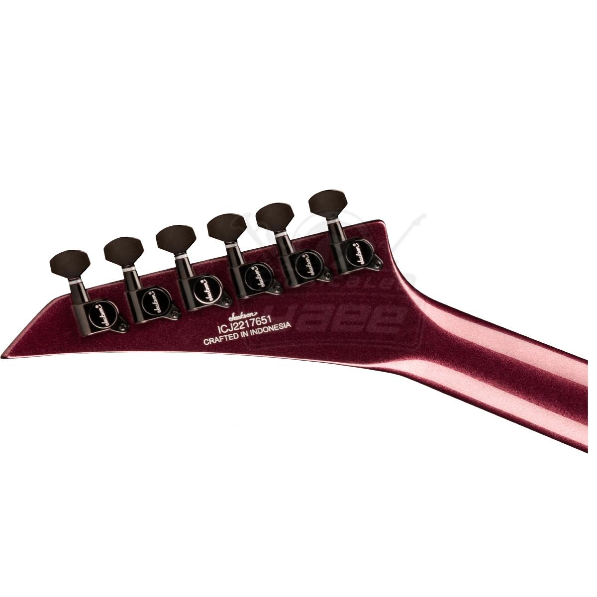 Un cuerpo de álamo con un elegante contorno y una construcción Jackson de mástil a través del cuerpo garantizan una comodidad ergonómica durante largas sesiones, además de un sustain monstruoso y una ejecución fluida hasta el traste 24 jumbo. Las varillas de refuerzo de grafito recorren el mástil de arce, protegiéndolo contra los daños ambientales, mientras que el diapasón de laurel con radio compuesto ultrarrápido de 12"-16" está diseñado desde el principio para facilitar los acordes y los riffs cerca de la cejuela, así como los solos rápidos y sin trasteos a medida que se avanza por el mástil.
