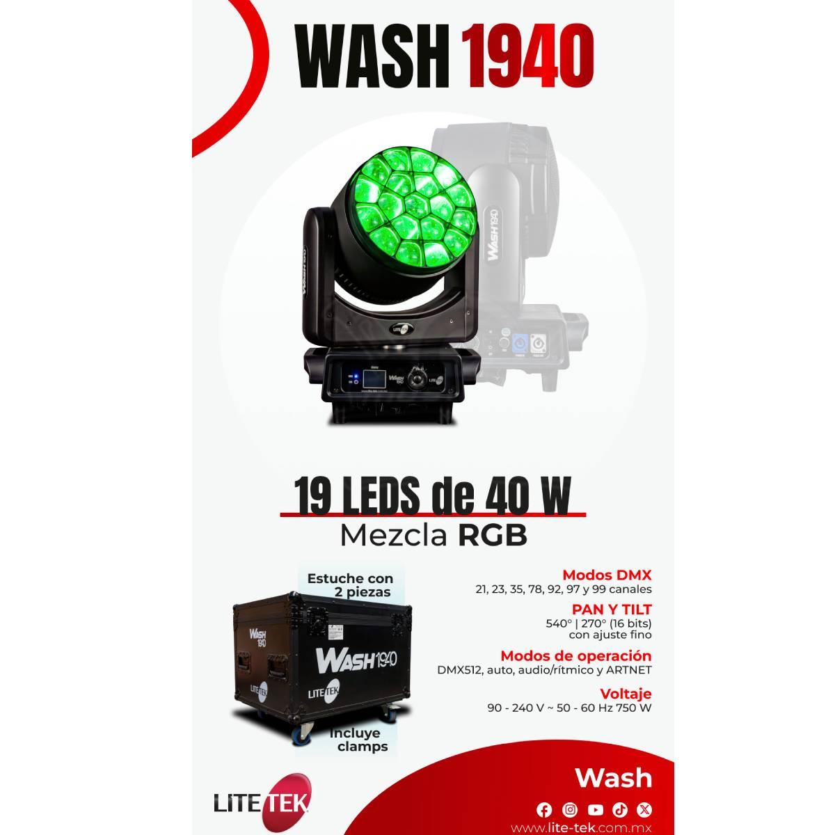 LITE TEK WASH1940 CABEZA WASH 19 LED CON ZOOM 40W ESTUCHE CON 4 PZ