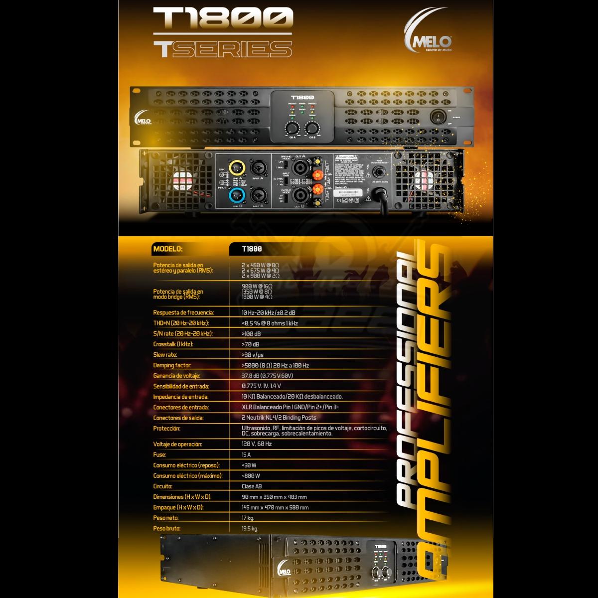 • Melo T1800  Amplificador profesional Melo Línea Tseries