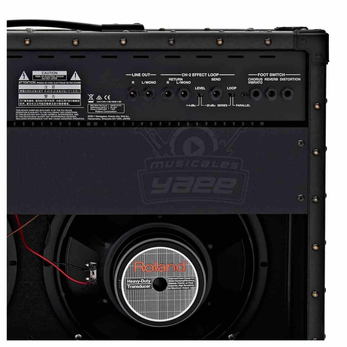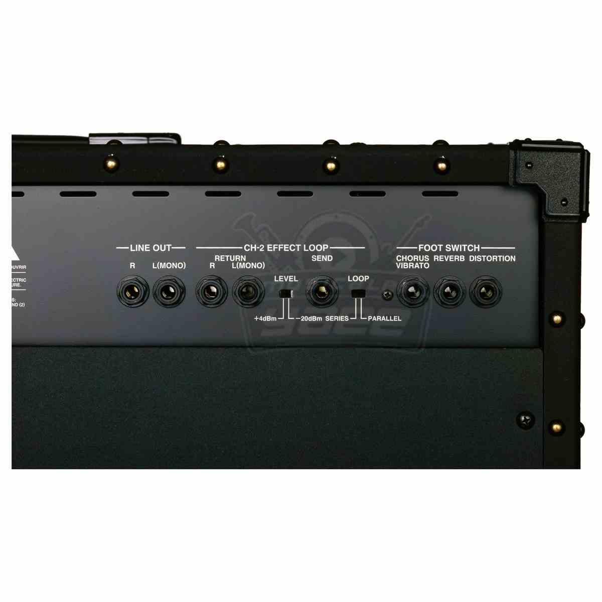 | Conectores | Line Out (L/Mono, R), entrada (High, Low), Foot Switch (Chorus/Vibrato, Reverb, Distortion), Channel 2 Effect Loop Send, Return (L/Mono, R) |