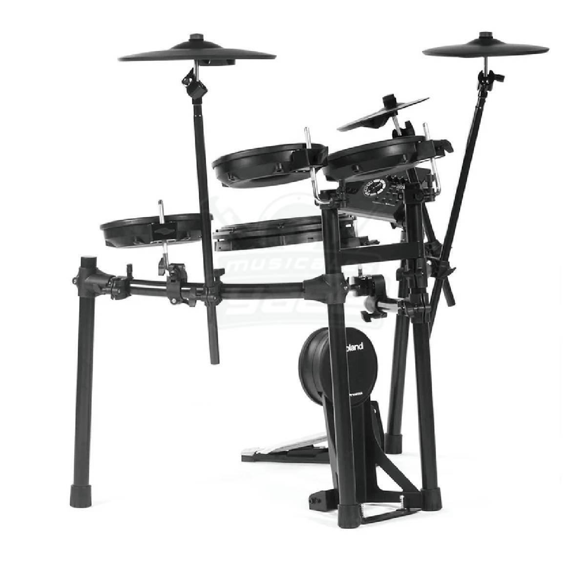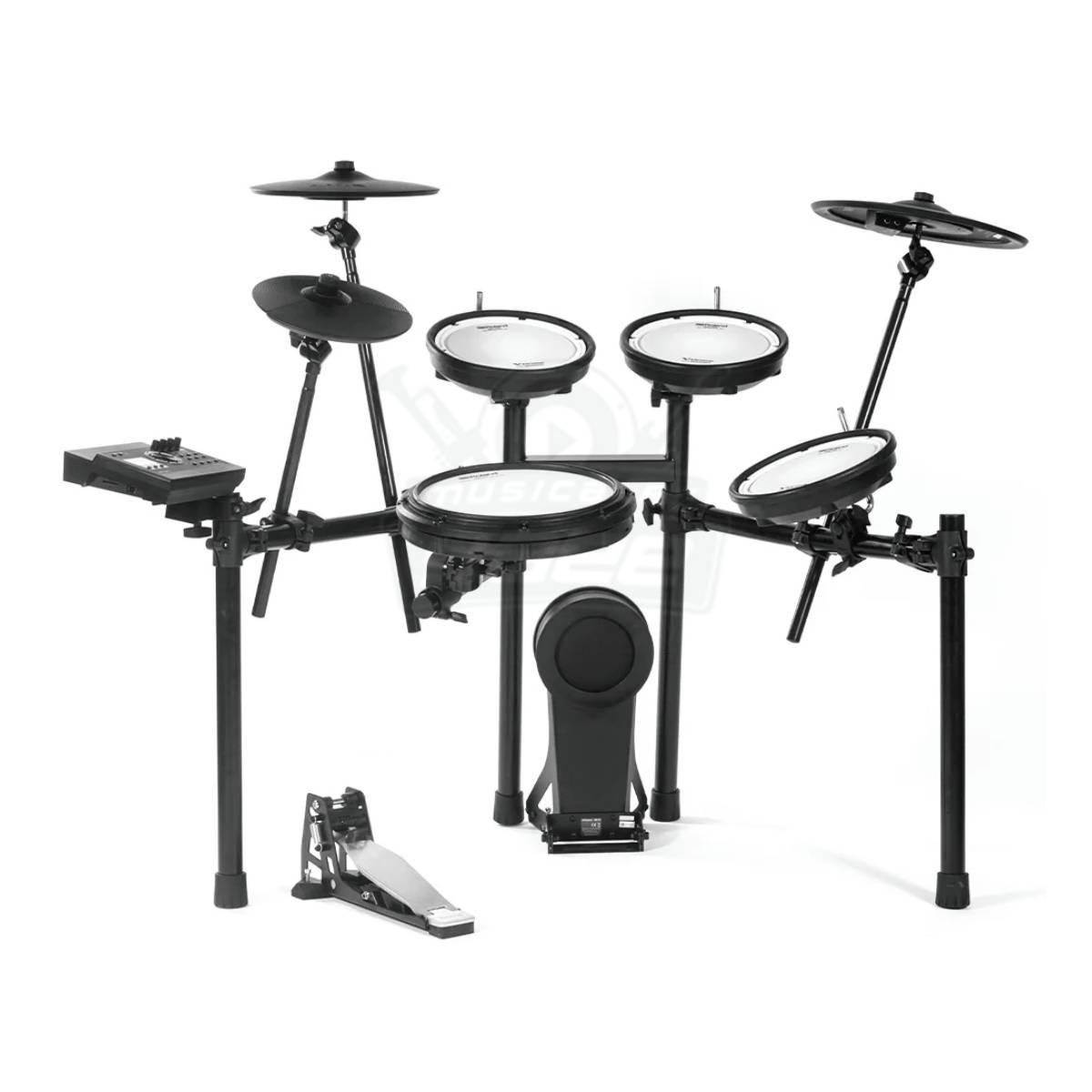 - Batería electrónica de cinco piezas, crash, ride, hihat con pedal controlador.